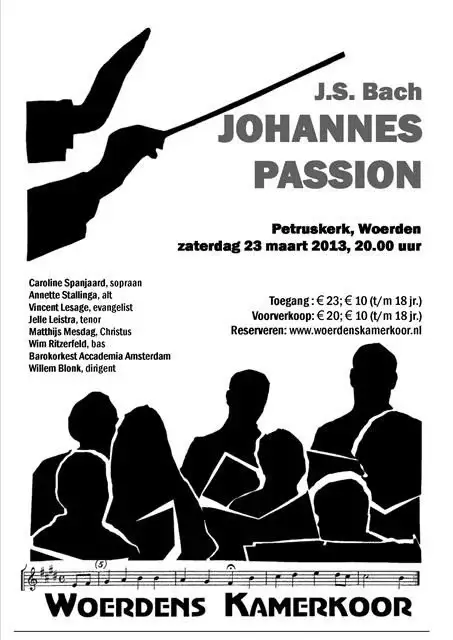 - 23 en 24 maart: Voor de vierde keer voerde het koor met succes de Johannes Passion van J.S. Bach uit, op 23 maart in de Petruskerk te Woerden en op 24 maart in de Open Hof te Rotterdam Ommoord, waar de evangelist werd vertolkt door Ard Verkerke.