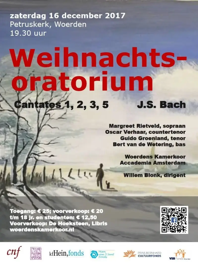 Op zaterdag 16 december heeft het Woerdens Kamerkoor het jaar 2017 in een goed gevulde Petruskerk succesvol afgesloten met het Weihnachtsoratorium van J.S. Bach.